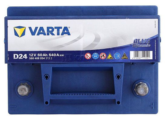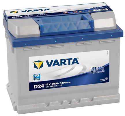 Varta Blue Dynamic D24 fait référence à la batterie dite sans entretien. La capacité de la batterie est de 60 Ah avec un courant d'appel de 540 A et une polarité inversée. Code ETN 560 408 054. En ce qui concerne les dimensions, la batterie a les dimensions suivantes 242x175x190 mm avec une masse de 15 kilogrammes.