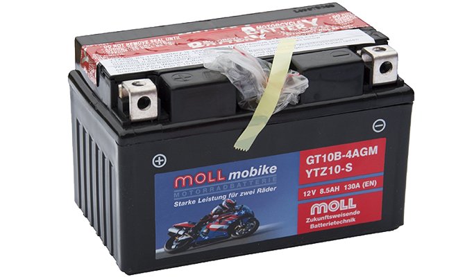 للدراجات النارية ، يتم تقديم خط Moll Mobike. وهي مصممة خصيصًا لتلبية المتطلبات المتوفرة على الدراجات النارية. تشكيلة الفريق تحتوي على ثلاث مجموعات من البطاريات.