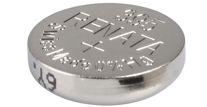 La batterie 395 est une pile bouton, à disque - une source d'alimentation miniature du fabricant Renata. Conçu pour les petits produits qui nécessitent une consommation d'énergie constante. Le produit est de forme cylindrique. Le corps de la cellule est une électrode de charge positive, une plate-forme ronde à une extrémité (d'un diamètre plus petit que la batterie elle-même) est négative.