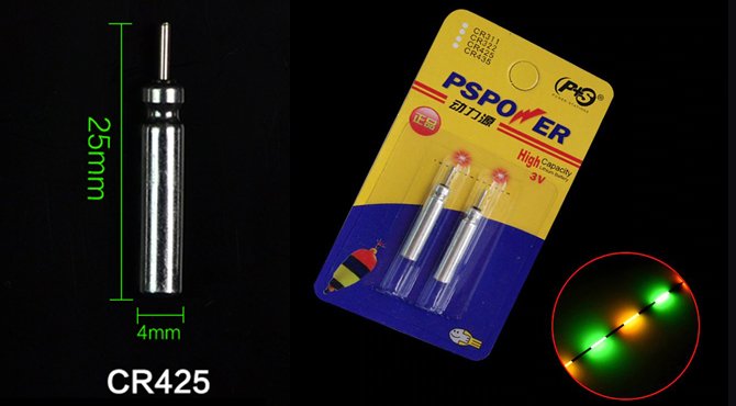 Le plus souvent, des éléments de ce type sont utilisés pour fournir du courant électrique aux flotteurs lumineux sans fil. En plus de la petite taille des batteries, elles pèsent très peu, elles n'ont donc pratiquement aucun effet sur la flottabilité de cet élément de pêche.