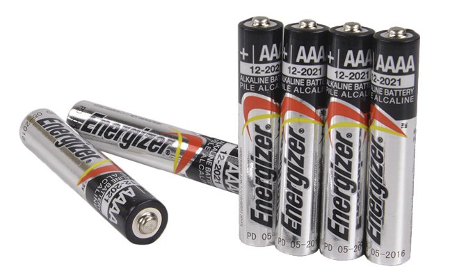 AAA. Това са много често срещани източници на ток от 1,5 волта с размери 10,5 х 44,5 мм. Те са маркирани LR03 за алкални клетки и подобно на АА клетки за други видове батерии (R03, FR03 и така нататък). Разговорно наречен розови батерии.