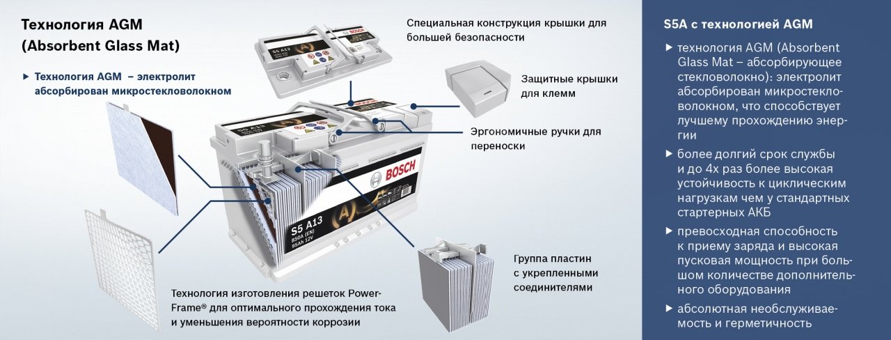 Les bateries Bosch S5 EFB i Bosch S5 AGM no són susceptibles a descàrregues profundes, però es recomana utilitzar en cotxes amb un sistema de parada inicial, de manera que aquestes tecnologies permeten restaurar la càrrega ràpidament.