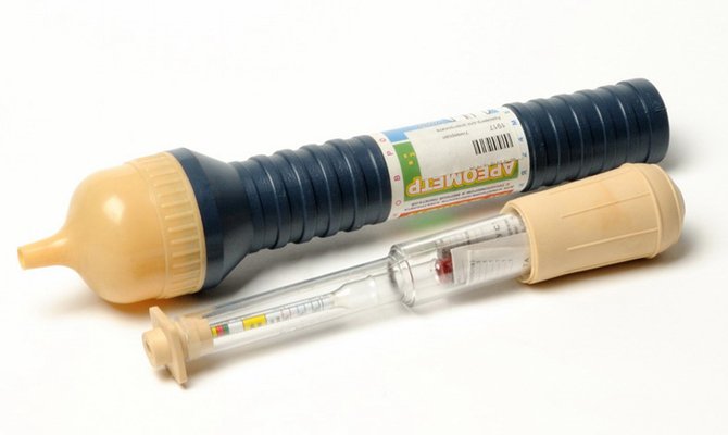 Consisteix en un matràs especial amb un flotador al seu interior. La part interna del flotador té una càrrega de plom, per tant, quan es bomba en un dipòsit de líquid, aquesta part s’instal·la estrictament en posició vertical. A la superfície del flotador hi ha una escala graduada mitjançant la qual es pot esbrinar el valor exacte de la densitat de l'electròlit de la bateria.