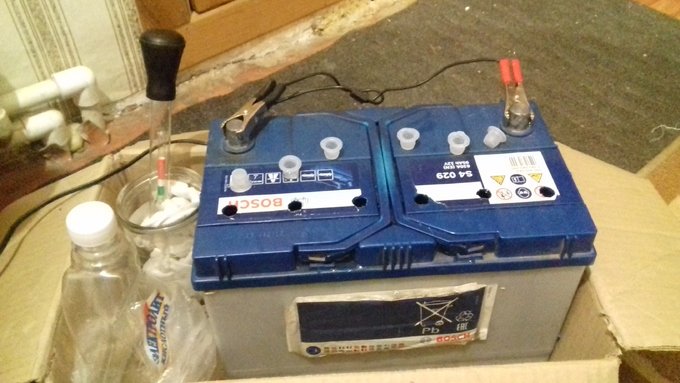 El procés de baixar la densitat es realitza de la mateixa manera que quan es realitza el procediment per augmentar la concentració de la solució, però en lloc de l'electròlit, s'afegeix aigua destil·lada a la bateria. És a dir, al principi, una part de l'electròlit s'elimina de la llauna problemàtica i, a continuació, el volum s'omple d'aigua químicament pura.