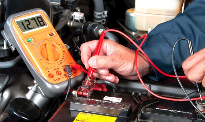 - Zkontrolujte napětí baterie, hladinu elektrolytu (v opravené verzi). Napětí měřené multimetrem by mělo být mezi 12,6 a 12,9 voltů. Pokud je nižší než spodní prahová hodnota, je třeba baterii dobít. Ve stacionárních podmínkách je to snazší než u automobilu.