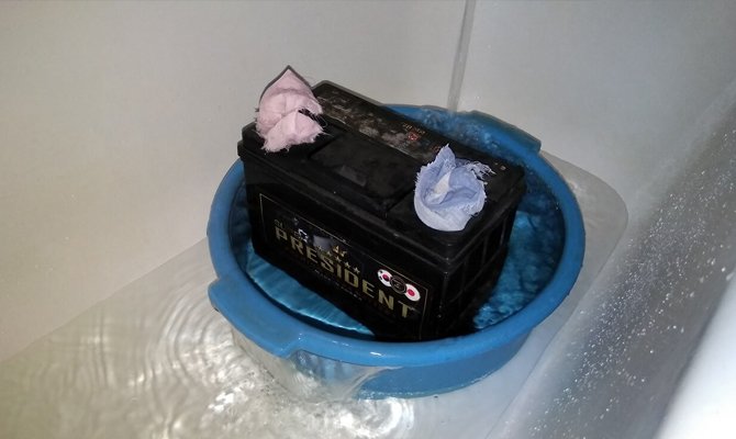 Odpověď na tuto otázku je zřejmá - ne! Baterii můžete zahřívat ve vodě, ale její teplota se musí postupně zvyšovat. Po přivedení baterie domů musí majitel automobilu najít vhodnou nádrž pro danou velikost. Nejlepší je, pokud se jeho hloubka shoduje s výškou zařízení. Svorky a víka plechovek musí být uzavřeny, aby do nich nemohla vniknout voda.