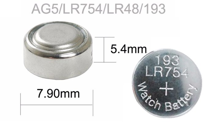 LR754 je alkalická manganová baterie. Má zaoblený zploštělý tvar. Je menší než velikost CR2032. Její tělo je pozitivní elektroda a místo je negativní, které je umístěno na jednom z konců. Záporná elektroda je vždy menší než oblast baterie.