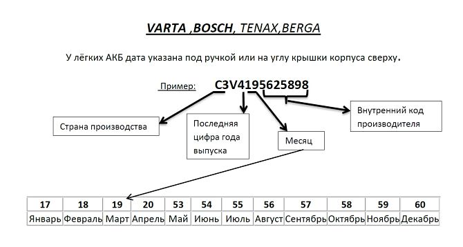 Kennzeichnung der Batterien Tenax besteht aus 24 Zeichen. Die vierte - eine Ziffer - gibt ein Jahr an, die nächsten zwei - einen Monat.