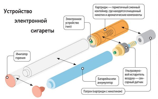 When the battery is fully charged, the reverse operation is performed. The battery is correctly installed in place (observing the polarity), after which the electronic cigarette can be used in normal mode.