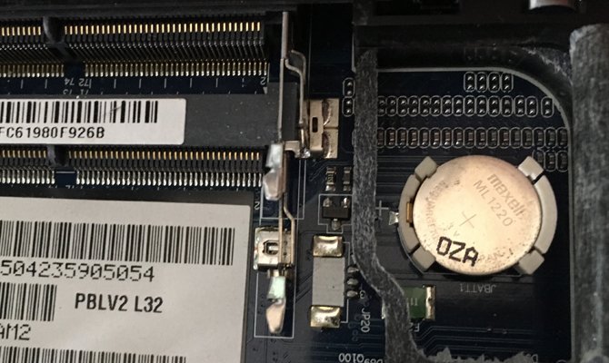 A személyi számítógép alaplapja használja CR2032, átmérője nagyobb és mérete nagyobb, ezért a rekesz forrasztása nélkül nem lehet beszerelni. Ha CR1220-at fog használni, akkor először le kell választania a forrás töltését a hálózatról.