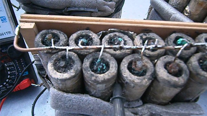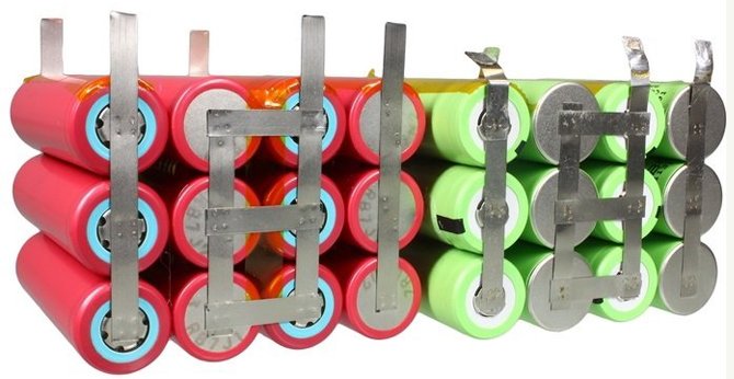 - Az akkumulátorokat a szükséges kapacitású párhuzamosan csatlakoztatott akkumulátorokkal hozzák létre, amelyeket egymás után kapcsolnak, amíg a kívánt feszültség nem lesz beállítva.