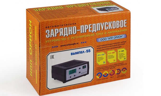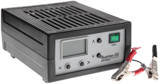 Til tross for de ganske høye kostnadene, begrunner vimpelen 55 det, siden det er et universalapparat. Jeg lader dem med forskjellige typer batterier - hjemme fra en 6 V motorsykkel og en bil, og drar dem også med jevne mellomrom på jobb, lader batteriet til dumperen.