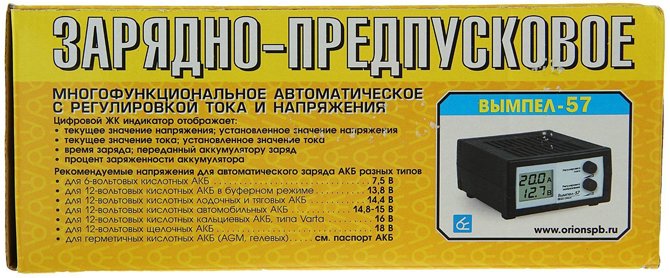 Pentru a reîncărca bateriile la vânzare, puteți găsi o varietate de încărcătoare. Dar, mulți automobilisti preferă modelul Vympel-57 produs de Orion SPB. Acest încărcător are setări convenabile, precum și ușurință de utilizare.