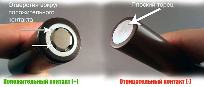 Pour les batteries rondes, le plus a un plan légèrement convexe, il sera donc extrêmement difficile de mélanger les conclusions positives et négatives, même s'il n'y a pas de désignation sur le boîtier du produit.