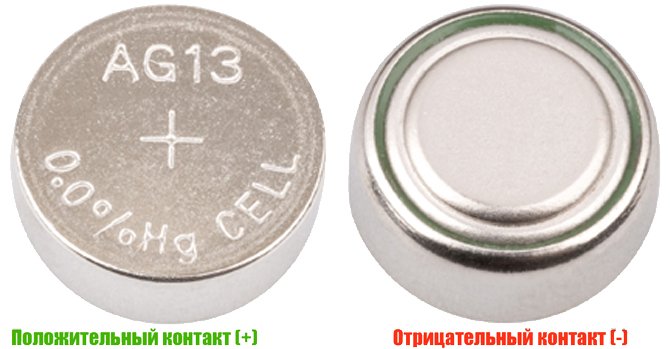 La couronne a une sortie positive de forme convexe et inférieure à une négative; en outre, un tel élément de batterie est connecté au moyen d'un bornier spécial, dans lequel les contacts ont également des diamètres différents. Vous pouvez également vérifier la polarité à l'aide de n'importe quel appareil de mesure de courant.