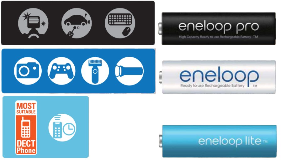 รุ่นนี้เป็นตัวเลือกที่ดีที่สุดสำหรับอุปกรณ์สำหรับใช้ประจำวันโดยใช้พลังงานต่ำ ตัวอย่างเช่นมันดีสำหรับโทรศัพท์ DEST, รีโมตคอนโทรลในขณะที่รับประกันอายุการใช้งานที่ยาวนานและประหยัด จำนวนรอบการชาร์จ / คายประจุสูงถึง 3,000 เท่า แบตเตอรี่ Eneloop Lite มีอายุการใช้งานต่อเนื่องหนึ่งถึงหนึ่งชั่วโมงครึ่ง