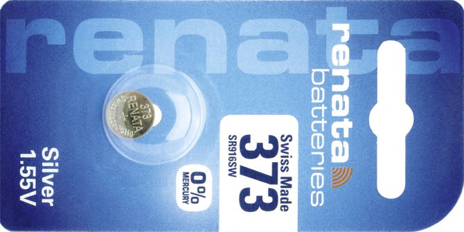 แบตเตอรี่ Renata 373 มีความต้านทานภายในน้อยที่สุดเนื่องจากองค์ประกอบทางเคมี แบตเตอรี่นี้อยู่ในหมวดหมู่ของซิลเวอร์ซิงก์ ไม่มีส่วนผสมของตะกั่วดังนั้นผลิตภัณฑ์ดังกล่าวไม่ก่อให้เกิดความเสียหายต่อสิ่งแวดล้อม