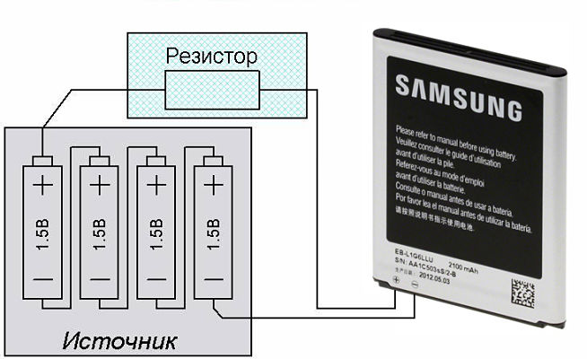 Batarya tasarımına yerleştirilmeli ve sonuçları kutuplara dikkat ederek telefonun batarya temas noktalarına bağlanmalıdır. Şarj işleminin başarısı, pillerin kapasitesine bağlıdır, pilin tam olarak şarj edilememesi mümkündür.