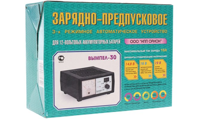 En utilisant l'appareil Vympel 30, il est possible de charger des batteries de voiture d'une capacité de 8 à 200 A / H, fabriquées en utilisant les technologies suivantes: